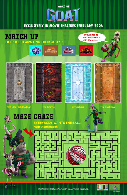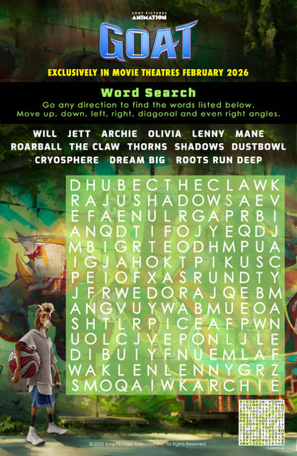 From Sony Pictures Animation, the studio behind Spider-Man™: Across the Spider-Verse and the artists that made KPop Demon Hunters, comes GOAT, an original action-comedy set in an all-animal world. The story follows Will, a small goat with big dreams who gets a once-in-a-lifetime shot to join the pros and play roarball – a high-intensity, co-ed, full-contact sport dominated by the fastest, fiercest animals in the world. Will’s new teammates aren’t thrilled about having a little goat on their roster, but Will is determined to revolutionize the sport and prove once and for all that “smalls can ball!”
